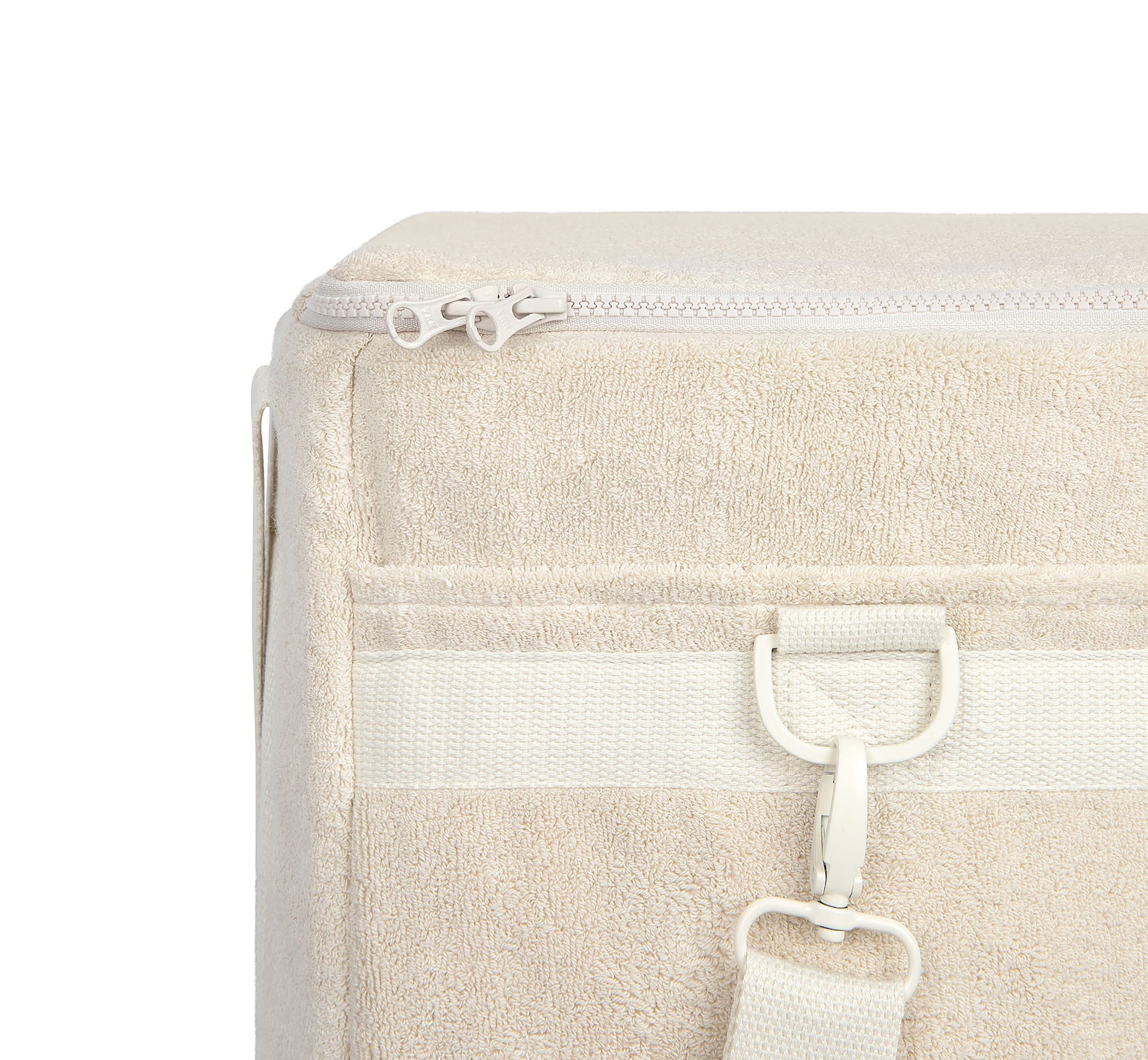 Our take on the Australian “Esky”, the Cooler Bag is made from our signature 100% Terry Towelling outer, insulated lining and zipped with YKK zip hardware.  Designed to fit all your essentials the Cooler Bag has two thick canvas handles, an extendable over the shoulder strap and three external pockets, giving you more room and comfort to carry a days-trip worth of supplies.