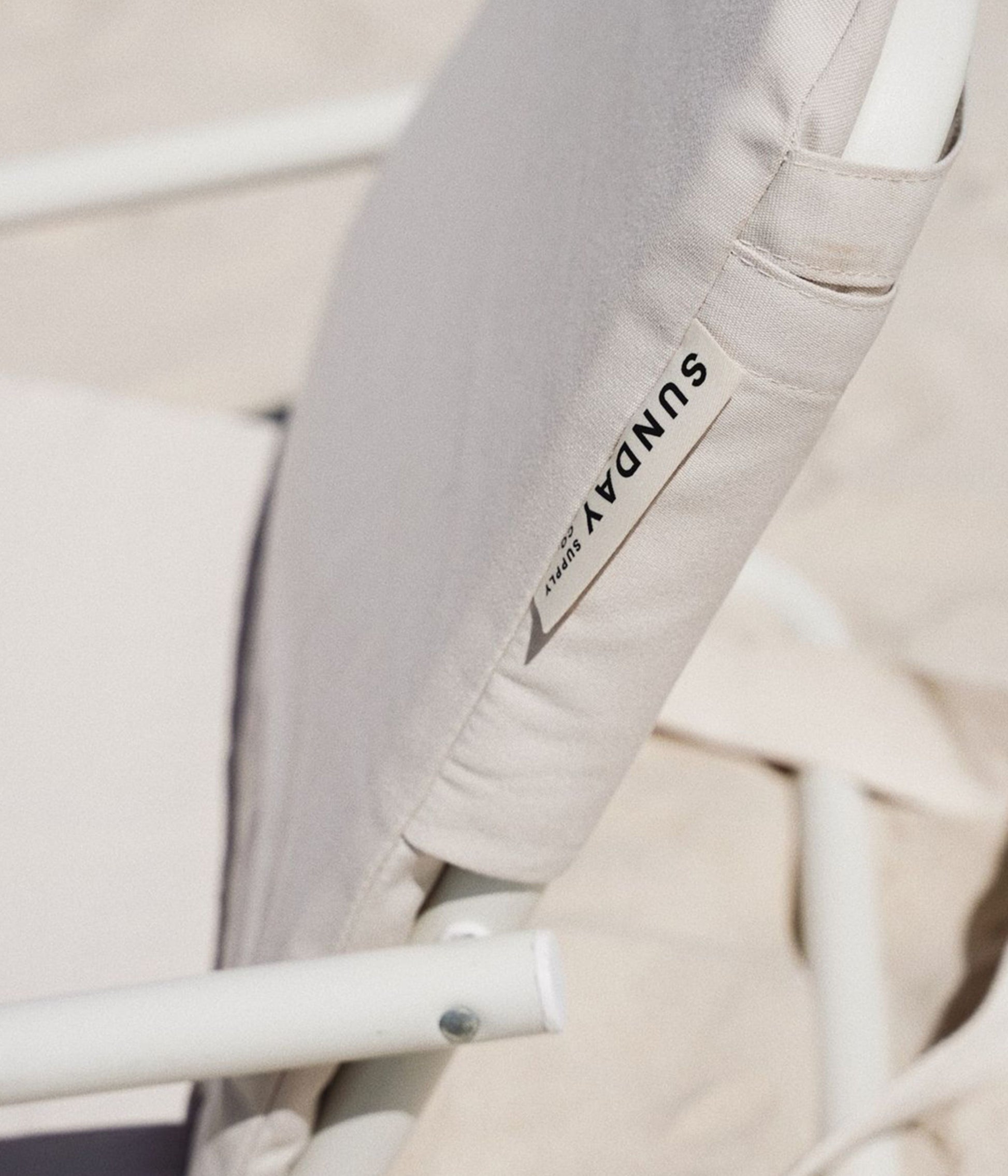 Designed for comfort and style, this lightweight beach chair features a custom-designed, premium cushion slip in our Dunes signature colour, removable carry strap and convenient storage pocket.