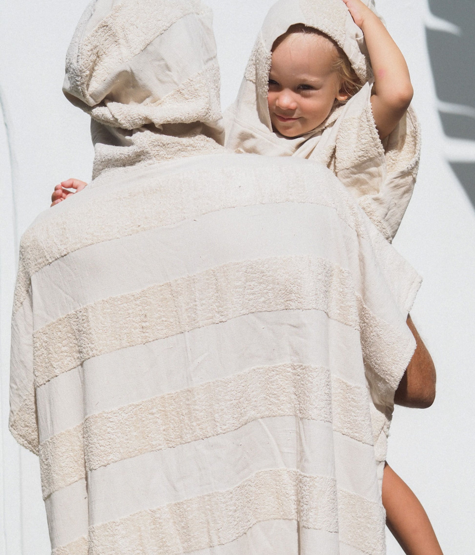 Comfortable and easy pullover/poncho for simple living. A unique take on kids apparel in our signature Dunes colour way. Designed for effective drying and lightweight convenience, made from the same ombre panelled weave as our 100% cotton beach towels.