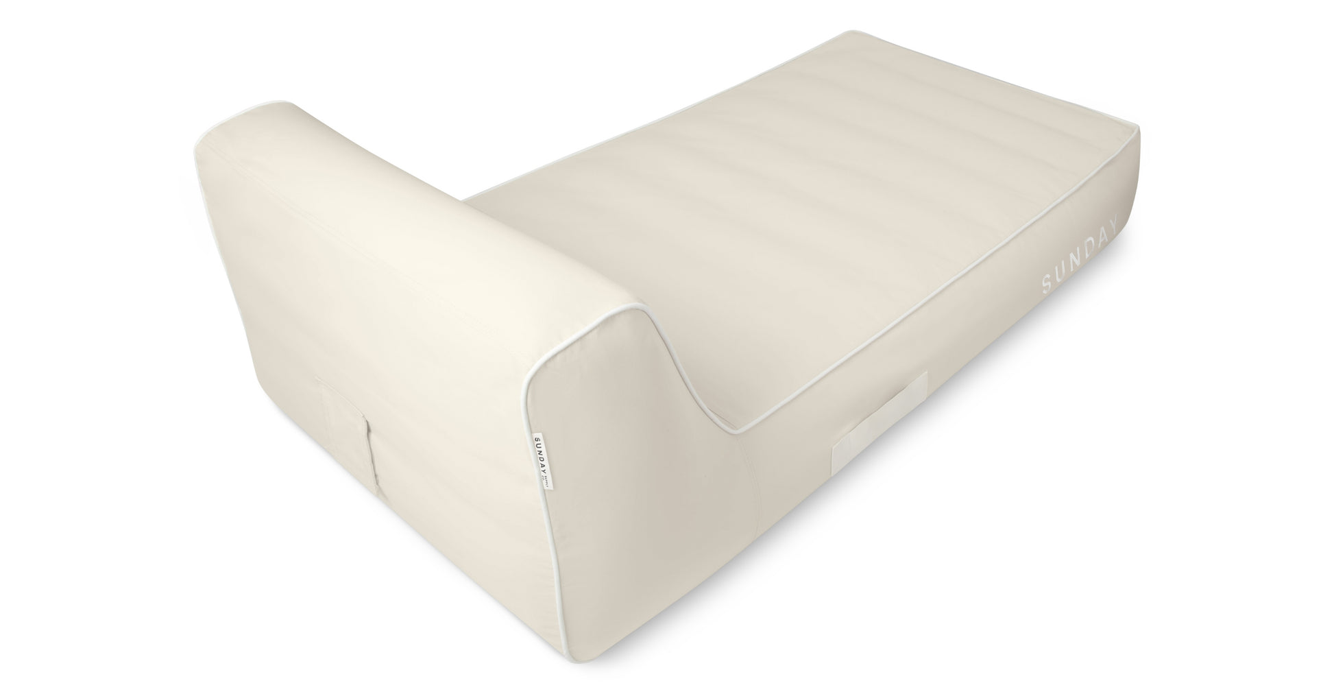 Crafted from heavy-duty, puncture-resistant PVC wrapped in our signature premium Olefin outdoor fabric, this lounger inflates to a supportive, cloud-like structure with a soft, laid-back silhouette. Its water-friendly and UV-protected exterior is made for life by the pool—resistant to sun fade, splashes, and everyday wear. Finished with a premium SUNDAY embroidery, the Dunes Lounger elevates any outdoor setting with a refined, resort-style feel.