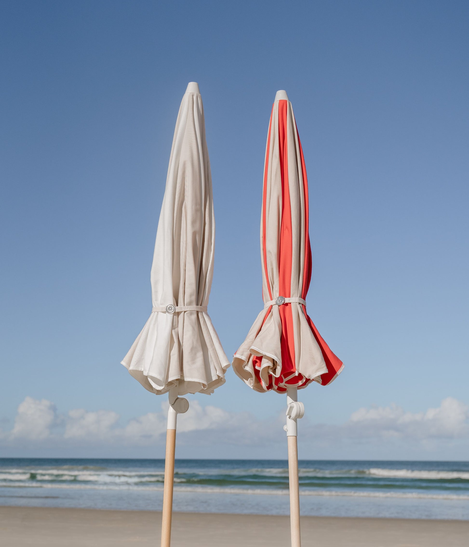 Our lightest umbrella series designed for simplicity and ease on any beach adventure. Featuring custom-designed hardware, a thinner, lightly varnished ashwood pole and finished with a cotton bind for classic style. Made to travel near or afar, this beach umbrella is your ideal companion with any beach setup.