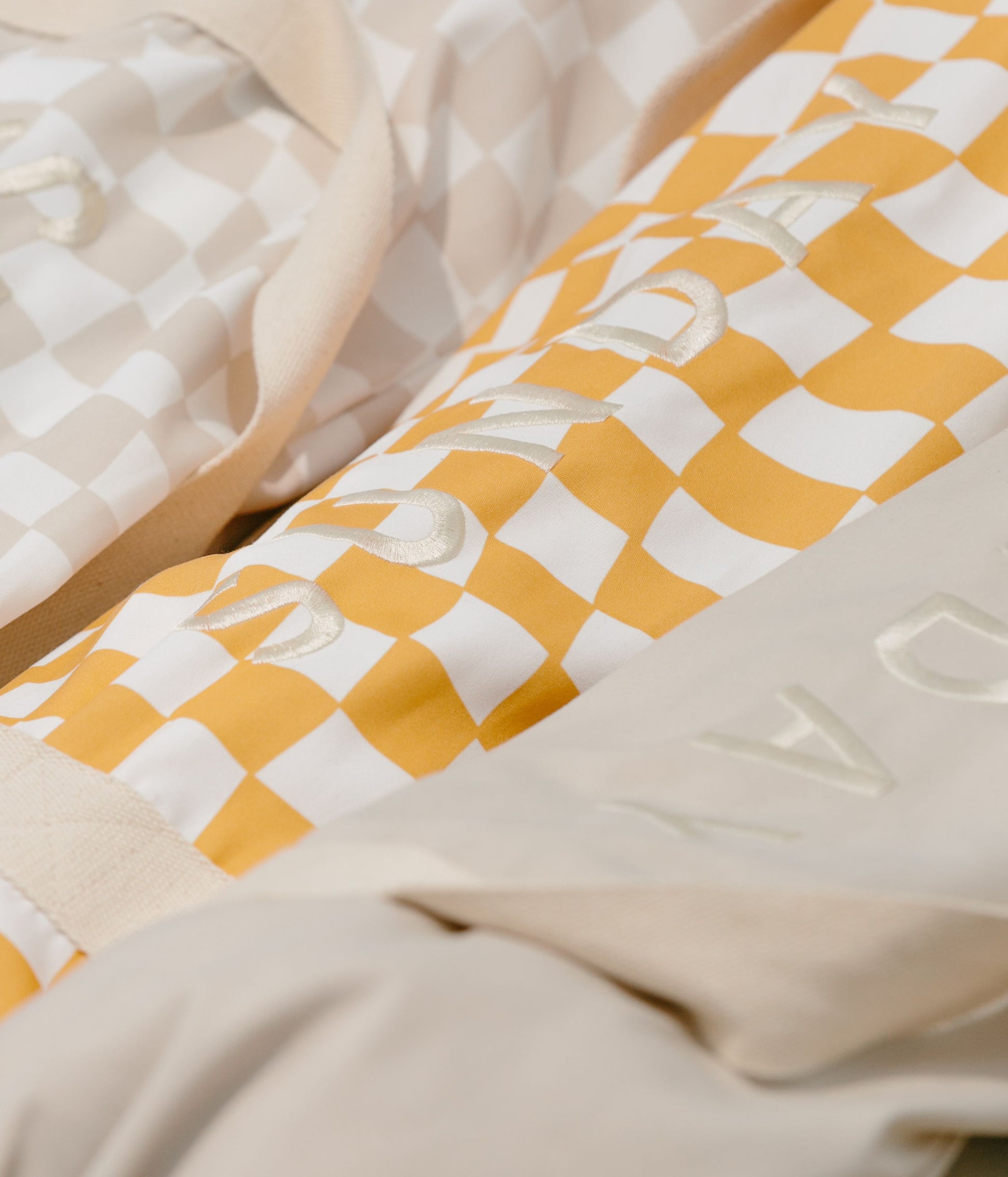 Our unique take on a seasonal check print – stand out with natural tones and classic simplicity. Subtle hues and tonal contrasts make for a classic addition to any beach, pool, deck or garden. Ready for sun and made for summer, keep good company in style with this classic essential.
