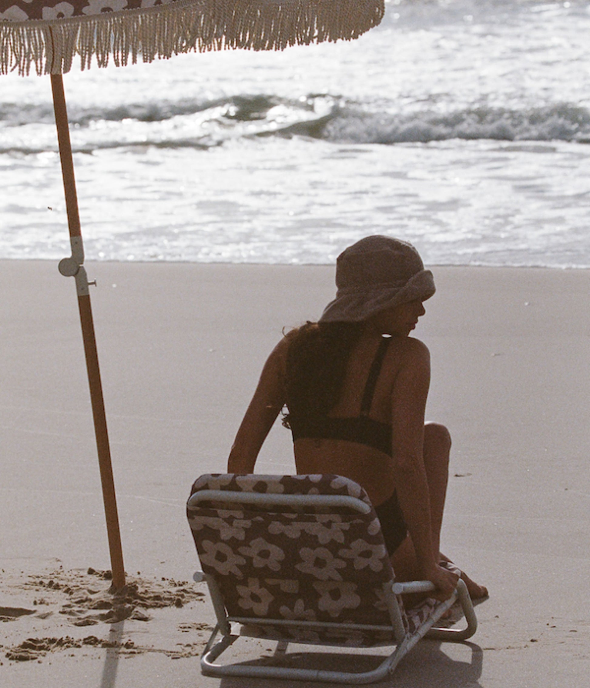 Our timeless beach umbrella with premium finishes and UPF50+ fabric. Designed for long sunny days in our Husk Flower signature print. Made with RPET (recycled) Premium Fabric.