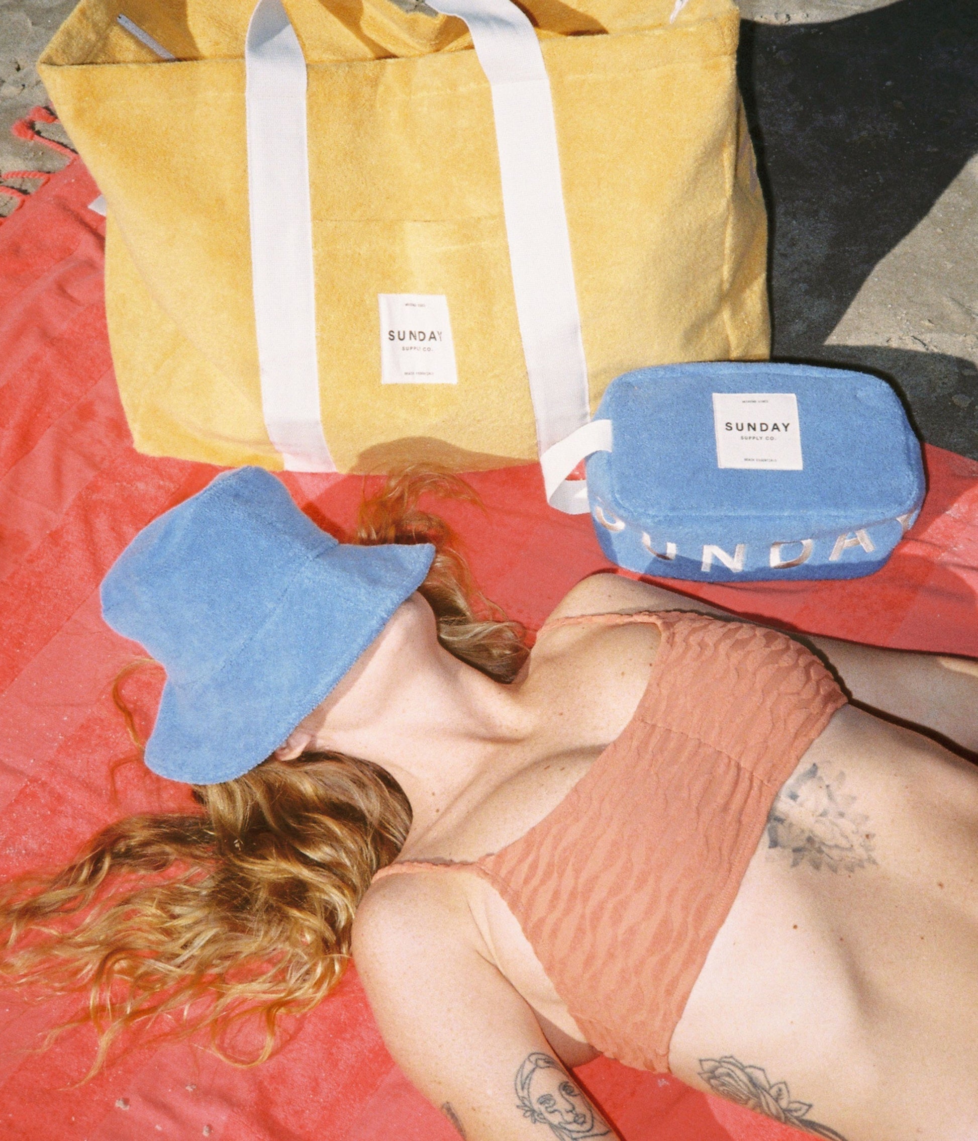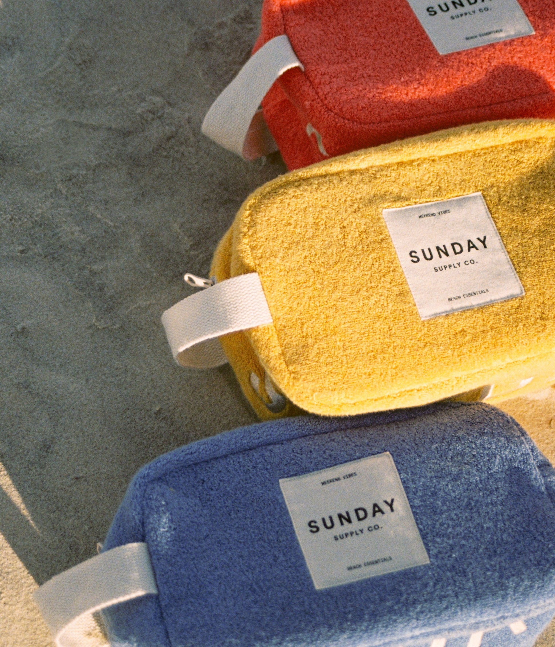 Featuring a 100% terry towelling outer, lined with heavy duty cotton canvas and zipped with premium YKK zip hardware. A thick canvas handle is attached to a single side of the pouch and our signature ‘SUNDAY’ patch logo is featured on the front with our embroidery on the bottom.