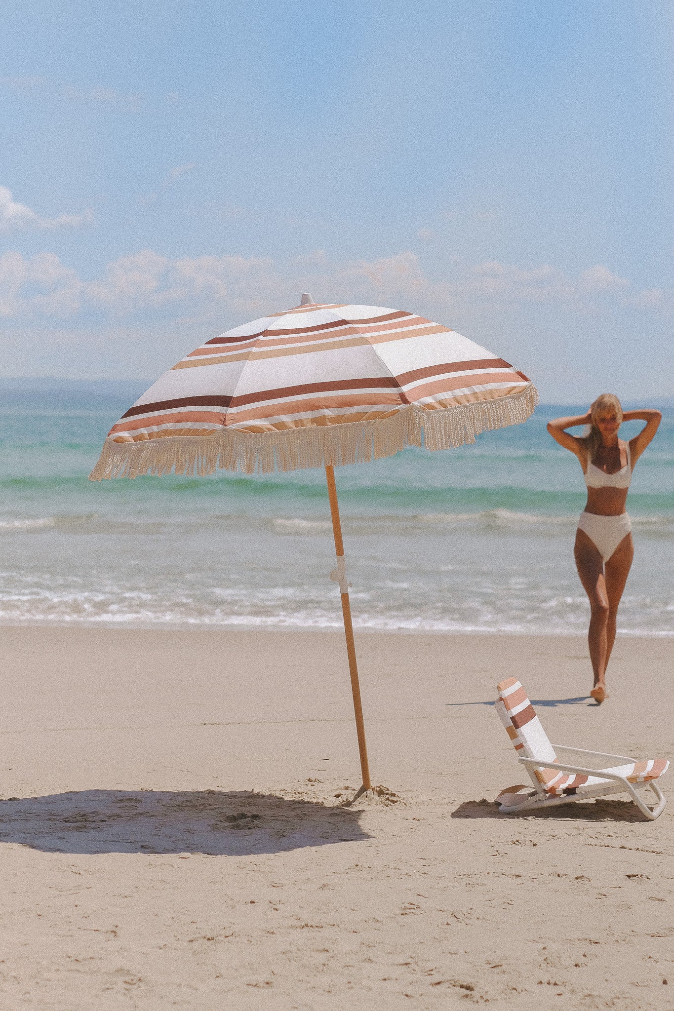 Our timeless beach umbrella with premium finishes and UPF50+ fabric. Designed for long sunny days under our Sun Valley Beach Umbrella. Made with RPET (recycled) Premium Fabric