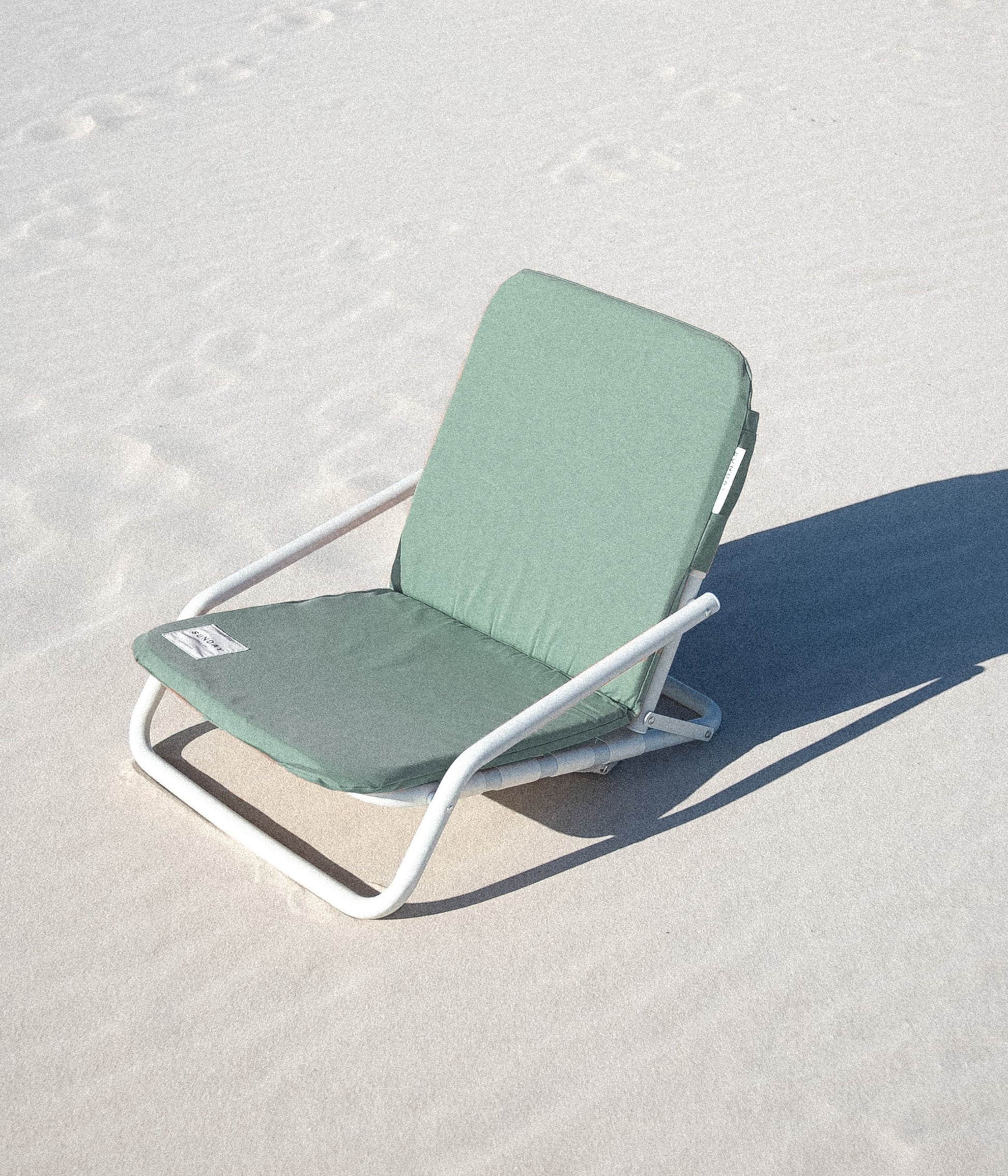 Our Beach Chair is low profile and fixed recline at 18cm from the ground.